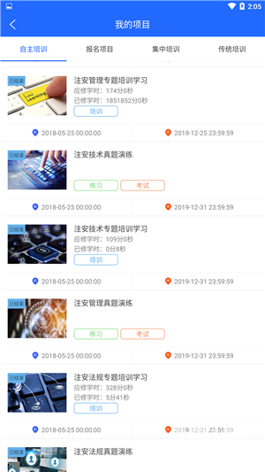 5、自主报名考试,课程结束后,可立即报名在线培训考试考试