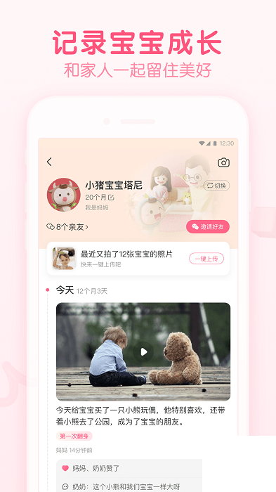 随时随地记录美好的孕育时刻和亲子时间,支持邀请特定的亲朋好友关注,照片和视频永久保存,在幸福的记忆中打造属于你自己的幸福家庭,信息保护更安全