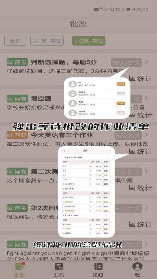 2、支持学生或者家长实时查看老师的作业批改以孩子的学习情况
