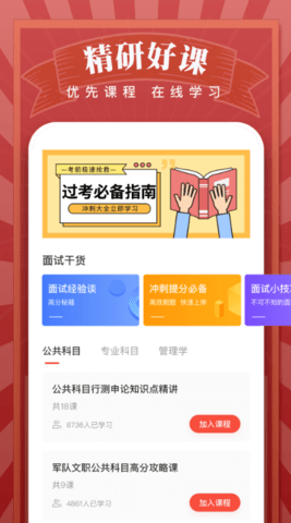 1、用户可以在平台上学习大量专业公务员考试题目和课程,供用户学习。用户可以根据自己的情况在平台上选择需要学习的课程