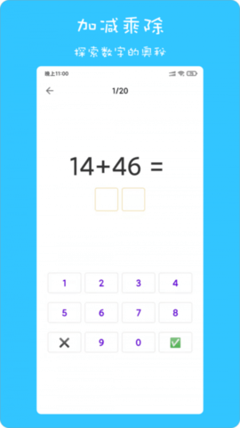 2、操作模块,宝宝可以通过一步一步的方法轻松掌握100以内的加减乘除,非常实用