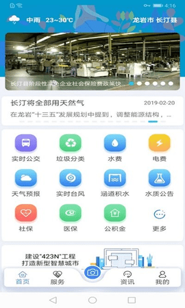 云上长汀是为长汀打造的一个服务信息平台,它不仅提供最新最有趣的实时新闻、各种娱乐八卦、生活轶闻、民事纠纷等信息,还可以通过在线处理一些方便有益的服务,极大地便利人们生活!