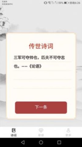 快来极速版是实用的学习软件。这里提供了很多优秀的古诗词。用户也可以随时在线学习各种诗歌内容。更快地了解不同诗歌内容的简洁性。了解星座的各种知识也会非常及时。超综合的诗歌内容带来了简洁和方便,其信息内容更加简洁。大大提高了用户的知识水平。