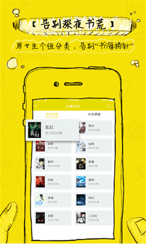 3、分类图书馆,所有类别的小说都有自己的版块,用户可以快速寻找到自己爱看的小说