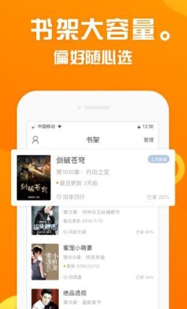 2、【大书架】容纳您所有的书籍,查询方便,并连载书籍章节,快速更新作品;