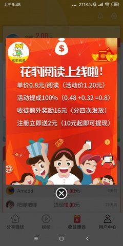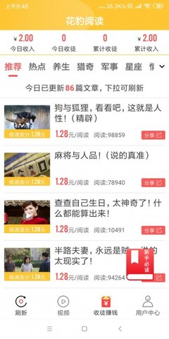 1、花豹阅读是一款阅读就能赚钱app