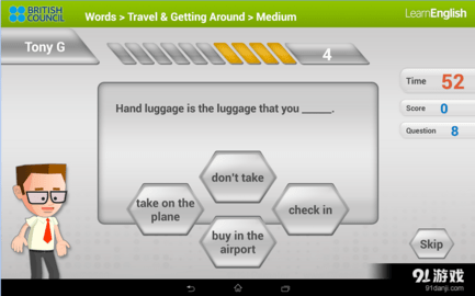 1、在线学习,您可以自由进入不同的学习主题页面,学习各种英语知识;