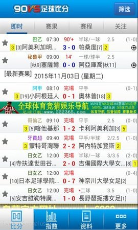 2、赛事数据:专业数据库覆盖五大洲超过300场足球赛事,无论您喜欢什么事件,您都可以在这里找到最完整的事件数据索引。