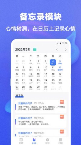 1、目前有非常丰富的备忘功能,更好的在线学习和使用实时提醒。