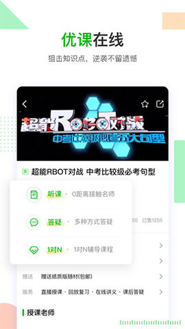涵盖小学语文、数学、英语和小学语文、数学、英语、物理、化学等各种学科,我们拥有一支高素质的教师队伍,拥有丰富的教学经验,帮助您快速提高成绩,这里也有很多优质课程,本课程支持实时互动,随时随地回放学习,以及笔记截图,同时,每个考点都以视频的形式显示,准确分析、狙击知识点,帮助孩子提高学习效率,快速提高学习效率。