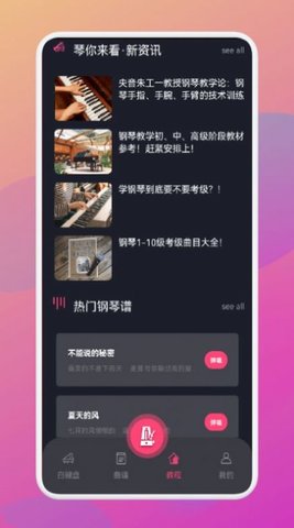 金曲乐刷刷是一款便捷的教育服务软件。这里有非常丰富的钢琴知识,在这里的钢琴练习体验都是非常舒适的。用户可以随时随地的在线学习技能,学习这里的信息资讯。喜欢的用户来下载。