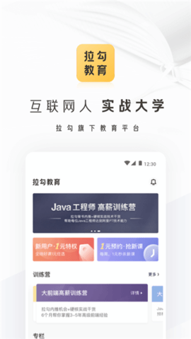 拉勾教育是一个推出的学习服务软件。该平台具有很多领域的学习资源。让用户可以更有信心备考。这里收集的知识都是非常丰富的,用户可以根据自己的需要进行检查。我们也可以通过学习课程进行练习,以各种形式(如视频、音频、实时广播和图形)满足您对学习场景的需求。让你掌握更多的技能和知识。