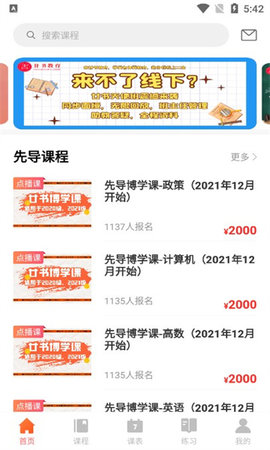 2、它为考生提供多功能服务,如直播课程、观看回放、经典材料、政策信息等内容。