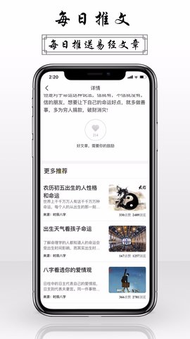 2、每天推荐大量好文章,每天为用户推荐与易经相关的好文章,供您操作。