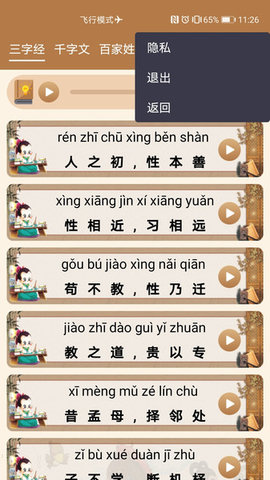 国学经典朗诵是一个便捷的服务平台。为用户在线提供了超级丰富的教育信息,这里掌握涵盖了一整套文化和学术体系,包括汉代经学、魏晋玄学、隋唐道学、宋明理学、明清实学。让你可以随时学习中国文化,在传承中国姓氏文化和汉字知识方面发挥了巨大作用,使儿童爱上丰富的中国文化。
