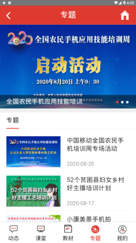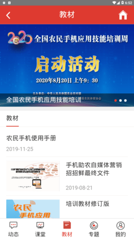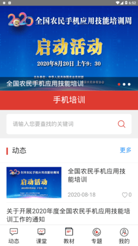 最新版农民学手机APP是一款非常好用的农民技能培训软件,软件可为用户带来最优质的培训课程,有动态、课堂、教材、专题等,更有专业的知识培训、种养殖技术指导,欢迎前来下载!