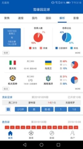 4、在线分析查看各种数据,充分掌握各类足球比赛信息,享受足球的乐趣