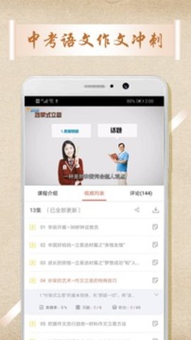2、包括各省市优质视频课程,多种定制课程,有针对性的学习汉语作文,运用诗词和文言文提高作文成绩