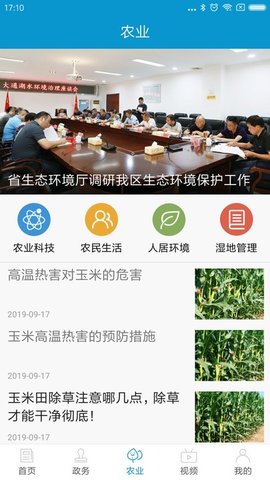 1、该软件设有新闻、政务、农业、视频等栏目,可以帮助指导和更好地服务大同湖
