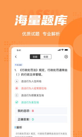 1、丰富的练习和解题模式APP拥有模拟考场、过去实际练习、快速练习、考场练习、解题记录等多种学习和解题模式。并陪您参加行政执法考试。
