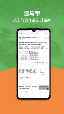 懂马帝手机版app是关于马的交流平台,以“新媒体社区”为切入点,进入中国现代马业,我们想建立一个平台架构,允许用户发布关于马的信息,有关于马的资讯都可以在这里查看,欢迎下载!