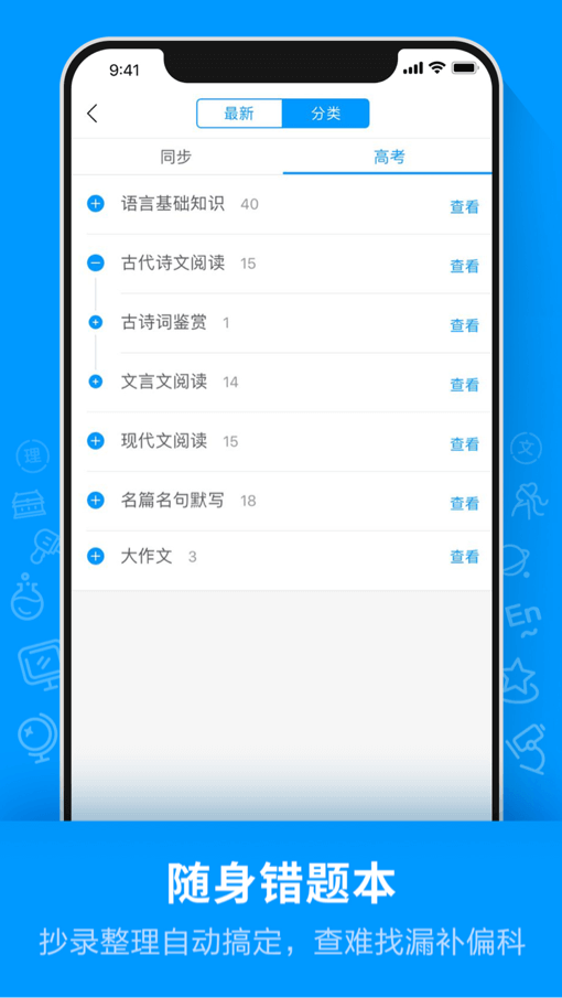 6、各种实用贴心功能:随身的错题本和草稿纸,高考闪电估分,巩固复习不落下。