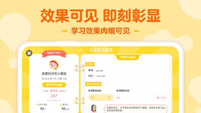 这款软件推荐给大家,欢迎下载使用,帮助父母解决孩子的早期英语教育和启发问题,发展他们的口语和听力技能,从小学英语开始,帮助孩子们为以后的学习打下良好的基础。
