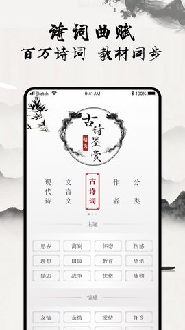 2、加上独特的水墨风格设计,帮助你掌握更多的学习古诗内容。
