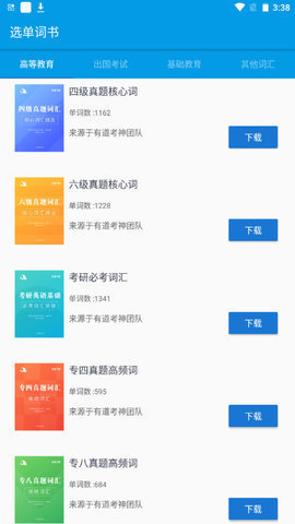 1、丰富的词汇书籍,涵盖了大学英语四六级、研究生英语、雅思、托福、初中英语等各类专业词汇书籍