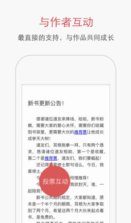 3、投票互动:方便为您喜爱的小说投出推荐票,月票,催更,添加印象,以及分享给您的好友等等。