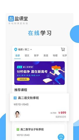 盐课堂app是一个面向全国中小学的在线普通教育学习平台,明代学校的老师和孩子们可以在家里学习而不必外出,通过一对一的有针对性的指导,孩子们将不再需要担心课堂上的困难,也不会记住知识点,它使学生的学习更加方便,使课堂知识更加扎实。如果您喜欢,请下载!