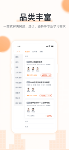 2、小筑教育官网版课程涵盖土木工程、机电工程、造价、装饰、市政路桥、水利水电、装配、钢结构等专业内容