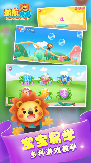 1、航航拼音为用户提供卡通形象的学习服务,让学习更有趣;