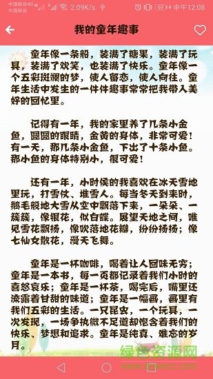 3、提供各种主题的作文,以及写作材料(包括写人、事、景、物等)。