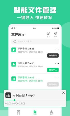 4、音频管理:录音转文字纪要可以随时管理您自己的所有音频,功能最少。