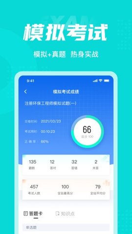 1、高质量模拟试卷:增加模拟测试功能。注册环保工程师可根据自身实践的测试场地选择相应的模拟试卷,或选择匹配的模拟整张试卷。