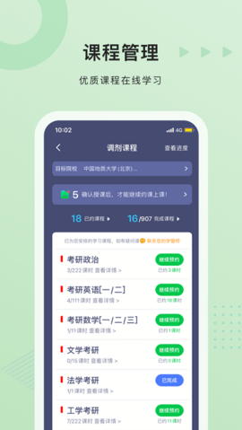 中公考研学员端这里拥有全面的考研学习资料。将专业的大纲知识点的详细解析,拥有专业课都会使用的知识点详解方法,包括考院校资讯、考研真题,经验分享课程等内容。针对在校群体和在职群体的学习特点,打造各类群体的专属课程计划,为您定制专属的学习计划。中公考研学员端会随时满足你的一切考试需求。