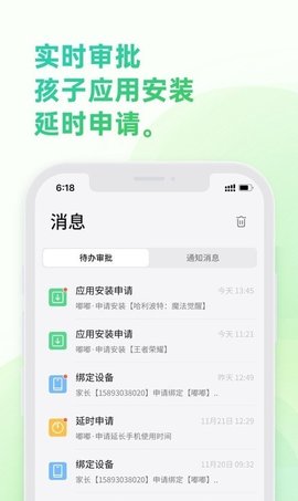 3、实时消息通知当孩子在手机上安装应用程序时,父母会实时收到消息,方便及时管理,让孩子安全地使用手机