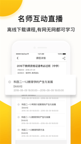 易师考是一款在线教师资格证教育学习的软件。为用户提供了专业的学习服务,良好的学习辅助软件可不能缺少,这里可以帮助学员无限次的教师专业知识,在线获取专业的答疑服务。