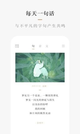 小栖是一款非常实用的资讯阅读类软件。该软件通过每天一句话,每天一篇文章,为用户推荐安静优美的句子,让用户可以每天收获不同的知识和不同的感受,营造一个专属于自己的温馨安静的阅读空间。