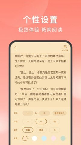 3、舒适的阅读体验:夜间模式,翻页效果,多种阅读主题,阅读页面横屏和竖屏的随机切换。