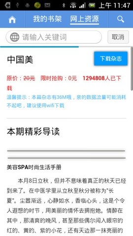 1、离线阅读,在线缓存,一键下载优质图书,不浪费宝贵流量