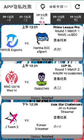 1、界面简单,查看所有比赛,即将到来的LOL世界总决赛,游戏爱好者可以投票,非常有趣