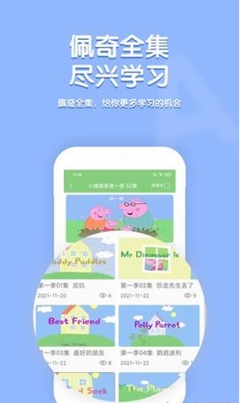 1、小猪佩奇口语秀app有很多集,基本上所有的集都在里面。最纯正的英语口音学习,让学习更系统。