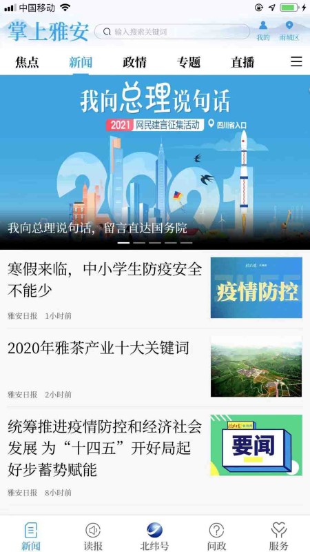 1、掌上雅安的主页提供的一站式服务,为读者提供最便民的本地新闻。