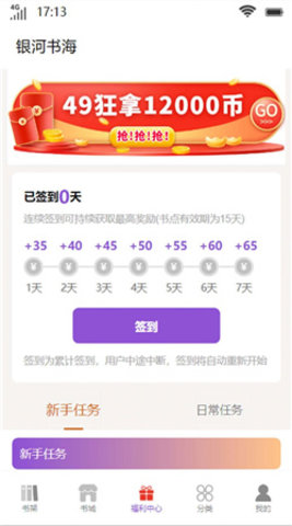 1、用户福利:新用户福利攻击,大量图书先到先得,但抢得不快;