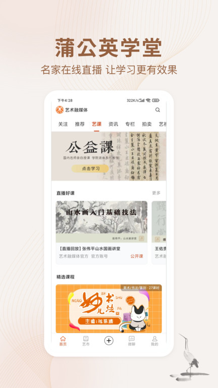 艺术融媒体是一款在线艺术教育管理软件。在线提供了很丰富的艺术资源,汇聚了喜欢艺术的朋友。让大家学习艺术课程能快速找到需要的学习知识,还能对自己喜欢的内容点赞评论转发。