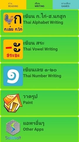 3、在带键盘的阅读应用中,辅音泰语。44个字符来自。鸡鸮按下按钮,它发出的声音是“泰国新闻”。还有一种泰式声调语言,泰式32个元音和4个声调。泰语和单词的变音符。添加动物和动物名字的声音从1-20和泰语计数。