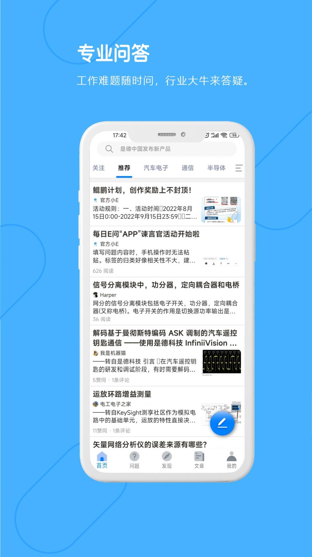 2、学习最全面的电子工程问答,实时理解和查看各种电子信息技术问题。