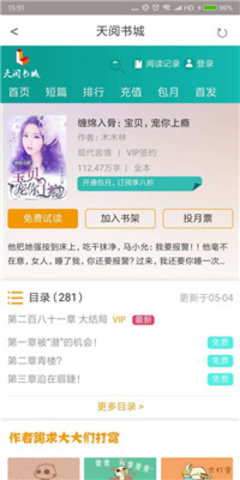 2、天阅书城是一个很好的追书软件,有数百万的资源和许多小说是免费的。
